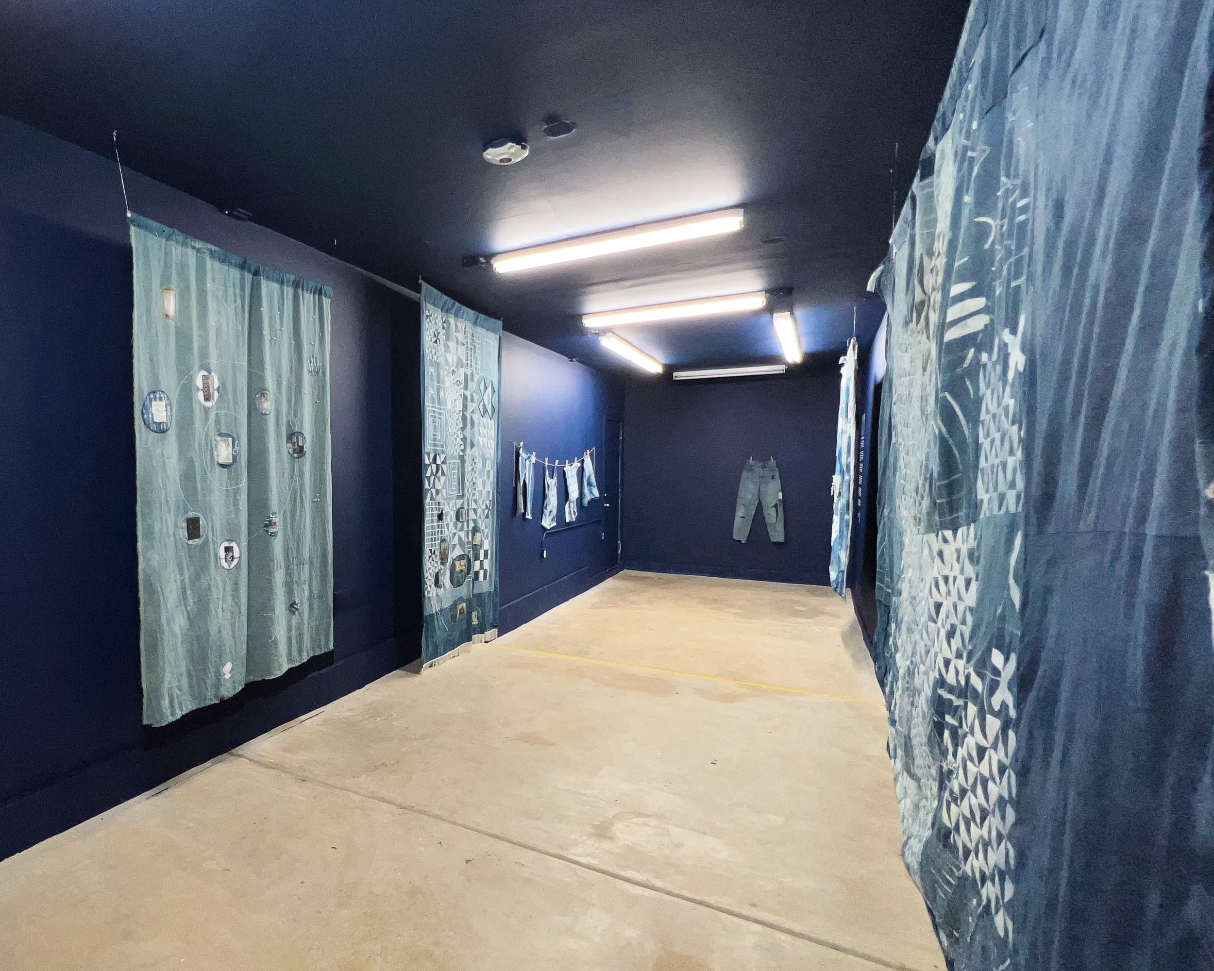 Within the intimate spaces of Beyond Blue, visitors encountered a profound fusion of art and historical consciousness. Eregbu's vibrant and emotive artworks poetically explored the complex intersections of identity, memory, and cultural heritage while honoring ancestral connections and narratives intricately woven into indigo's fabric through the unique lens of a woman of West African heritage. Harth's meticulous craftsmanship and intricate textile installations paid homage to the family, history, and hard work through the American history of the fabric and its relationship to Blackness in America.